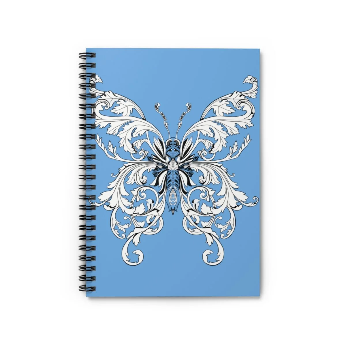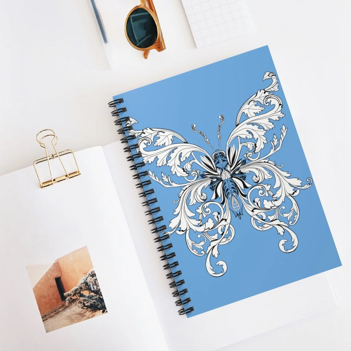 Filigree Butterfly Spiral Notebook - Ruled Line | Unique Fantasy Insect Artist Design Journal | Office or Home | Cottagecore