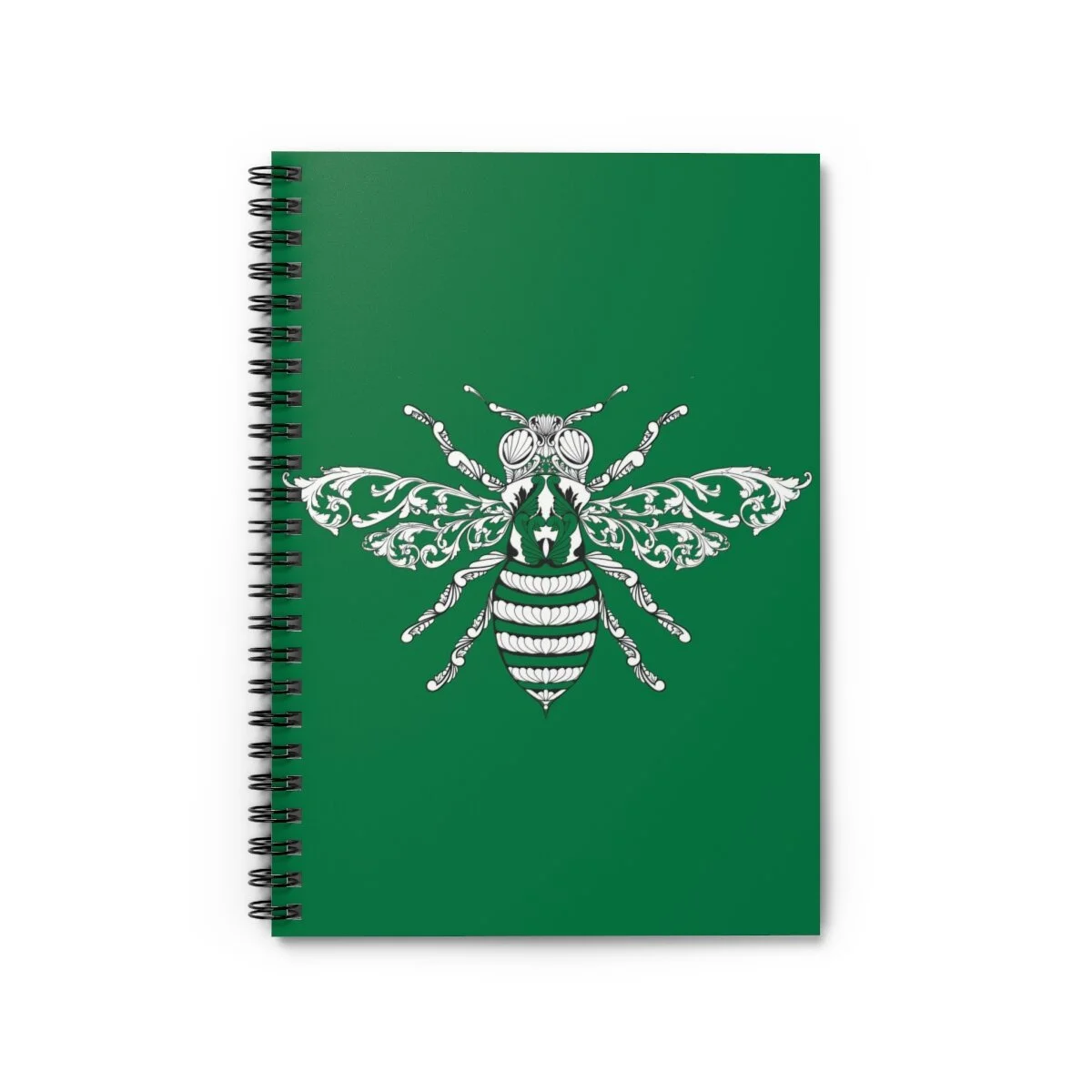 Filigree Bee Spiral Notebook - Ruled Line | Unique Fantasy Insect Artist Design Journal | Office or Home | Cottagecore