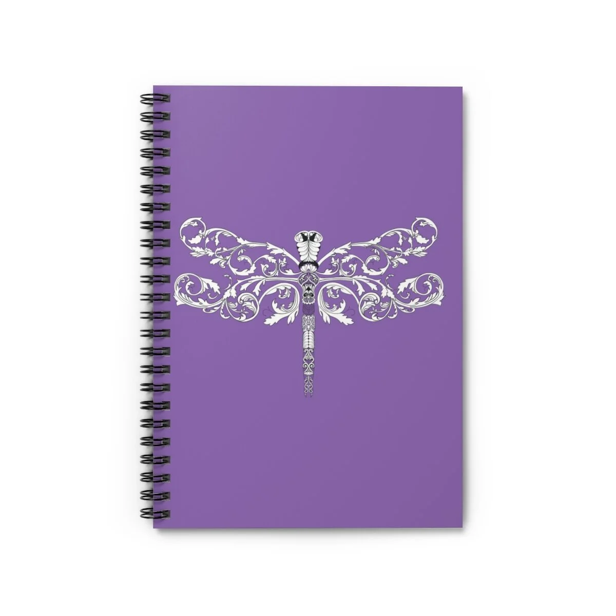 Filigree Dragonfly Spiral Notebook - Ruled Line | Unique Fantasy Insect Artist Design Journal | Office or Home | Any Occasion Gift